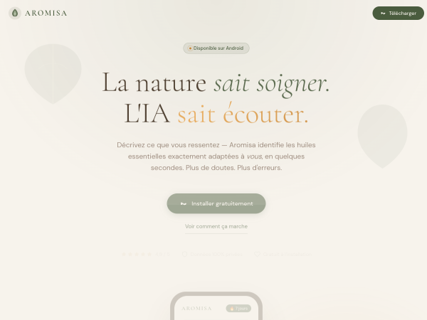 Aromatherapie personnalisee par IA — 51 huiles essentielles, protocoles guides et journal personnel